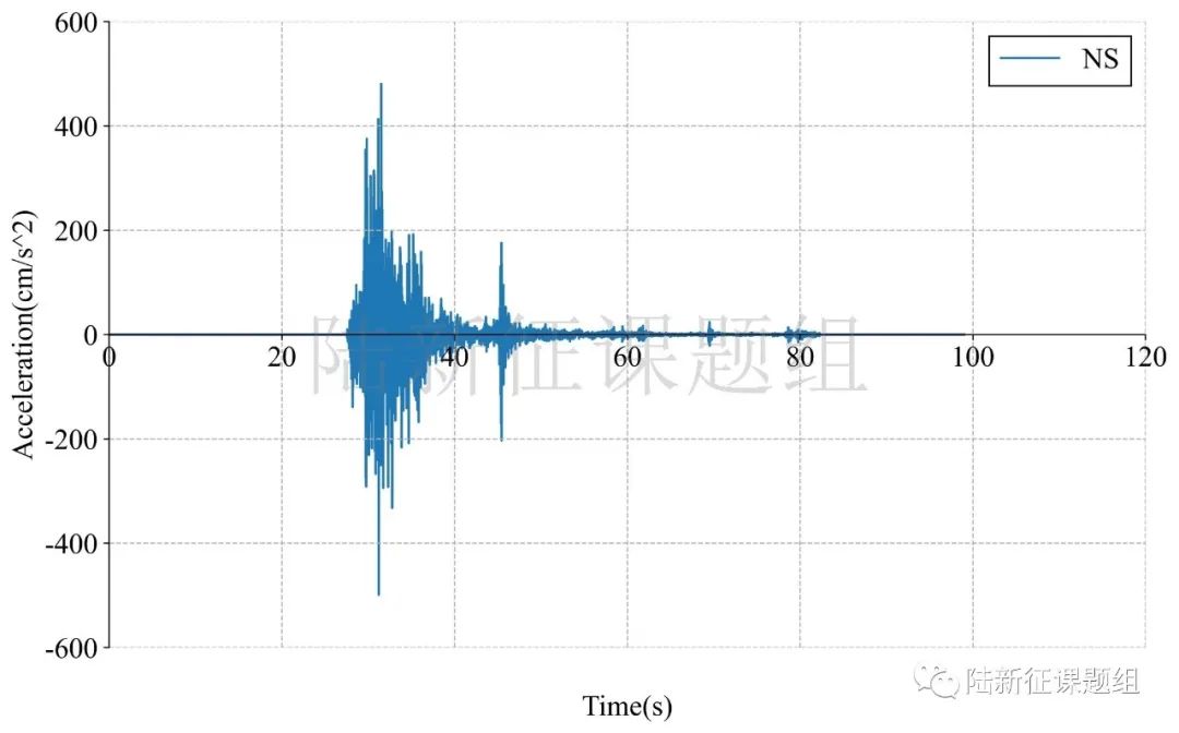 QH.C0028典型台站位置北纬37.71度,东经101.31度,记录到水平向地震动峰值加速度为499cm/s/s,竖直向地震动峰值加速度为421cm/s/s。该地震动及反应谱如图1、图2所示。